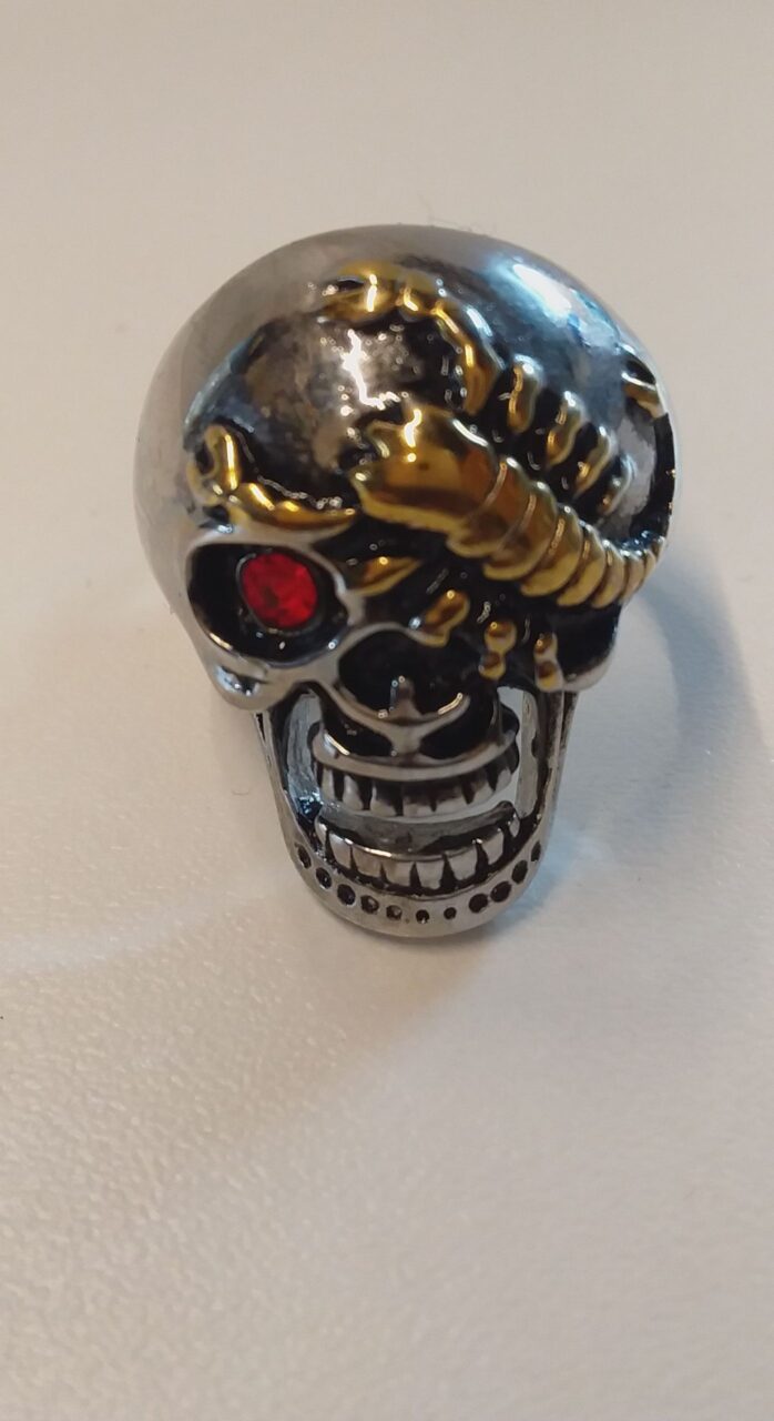 modelo – crãnio com escorpião dourado