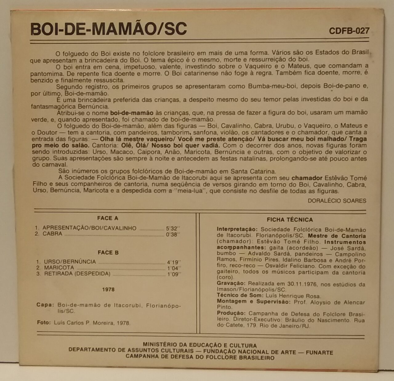 Boi de mamão/SC – Documentário sonoro do Folclore Brasileiro N.°27 – (compacto)